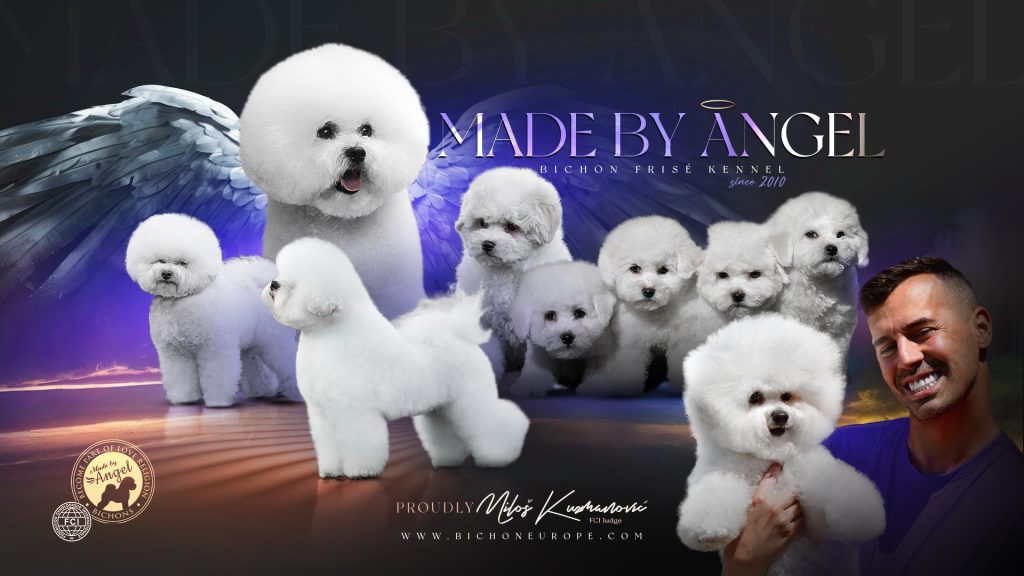 The “Made by Angel” story, as well as the most stories in the world of dogs, has begun spontaneously. I am a graduate engineer of environmental technologies by education, and by the interest I’m a naturalist and a cynologist. The year 2010, after a long time, I again wanted to have a dog. This time the choice was a Bichon Frise, a breed which initially has got my attention by its exterior, and then by temperament. That love lasts even today and will last forever. Honey was the first one to come to my life, and not long after her, came Crystal. The interest in shows has The “Made by Angel” story, as well as the most stories in the world of dogs, has begun led to a serious dedication to kinology, and each day I keep learning more and more. Today, I consider myself as a fully molded breeder who has got a clear goal and direction in which way to go. In Serbia, I have created three completely new blood lines of the breed. In breeding, I have used the world champions many times. The first male to come to my life is Lordi, from the Finland. The dogs which I have bred, have got many titles, excellent results, and now live all over Europe as well as Serbia. I am the first breeder of Bichon Frise from Serbia, who has sold a dog to USA, but also to all other parts of the world! I am in constant communication with all the owners of dogs which I have bred and with some of them I have become a best friend. My vision is to breed typical bichons, dogs which can compete with dogs from abroad at major competitions, but above all to be healthy, happy dogs that will go to good homes.